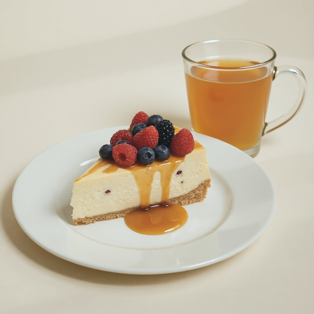 在蛋糕旁边加一杯果汁